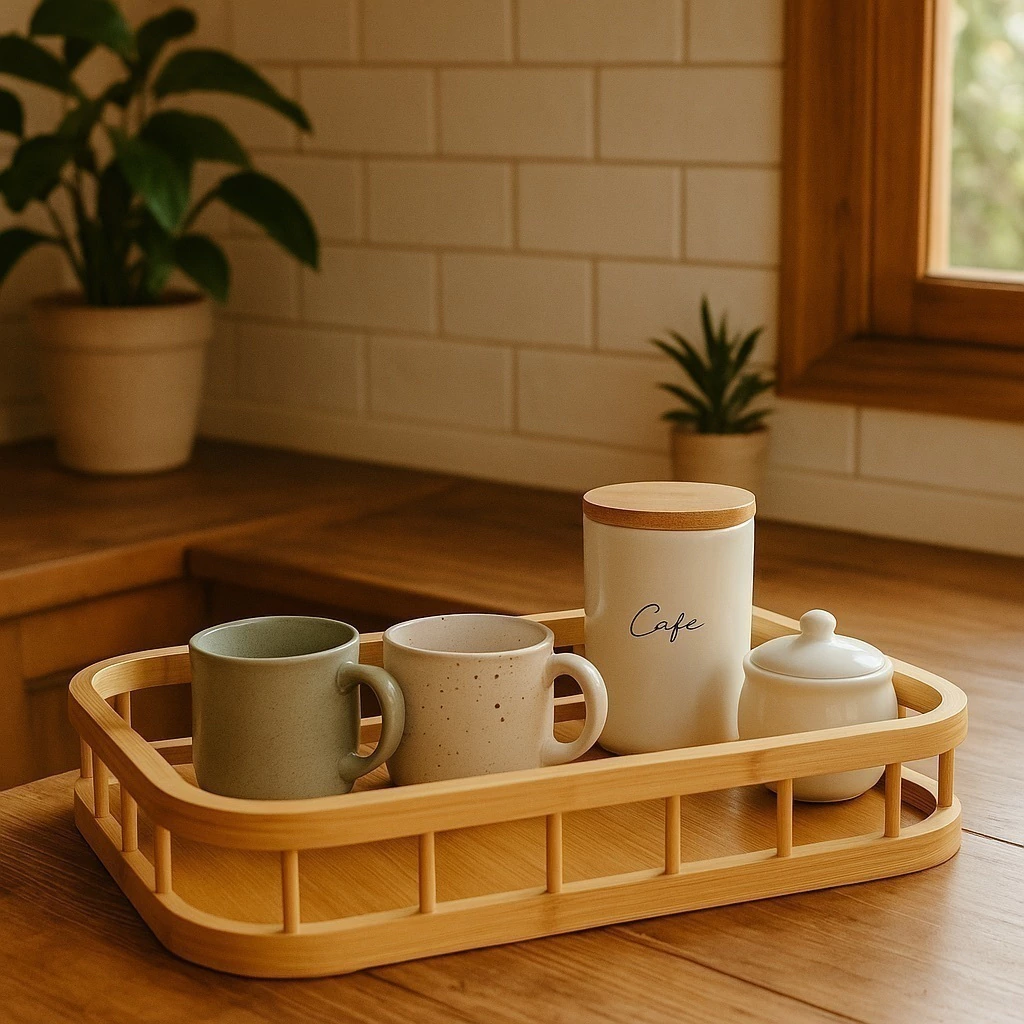 Versátil y decorativa, es perfecta para servir desayunos, organizar objetos en el living, baño o cocina, o simplemente para lucir como centro de mesa. Su estética limpia y contemporánea la convierte en un must-have para quienes buscan funcionalidad sin resignar estilo.