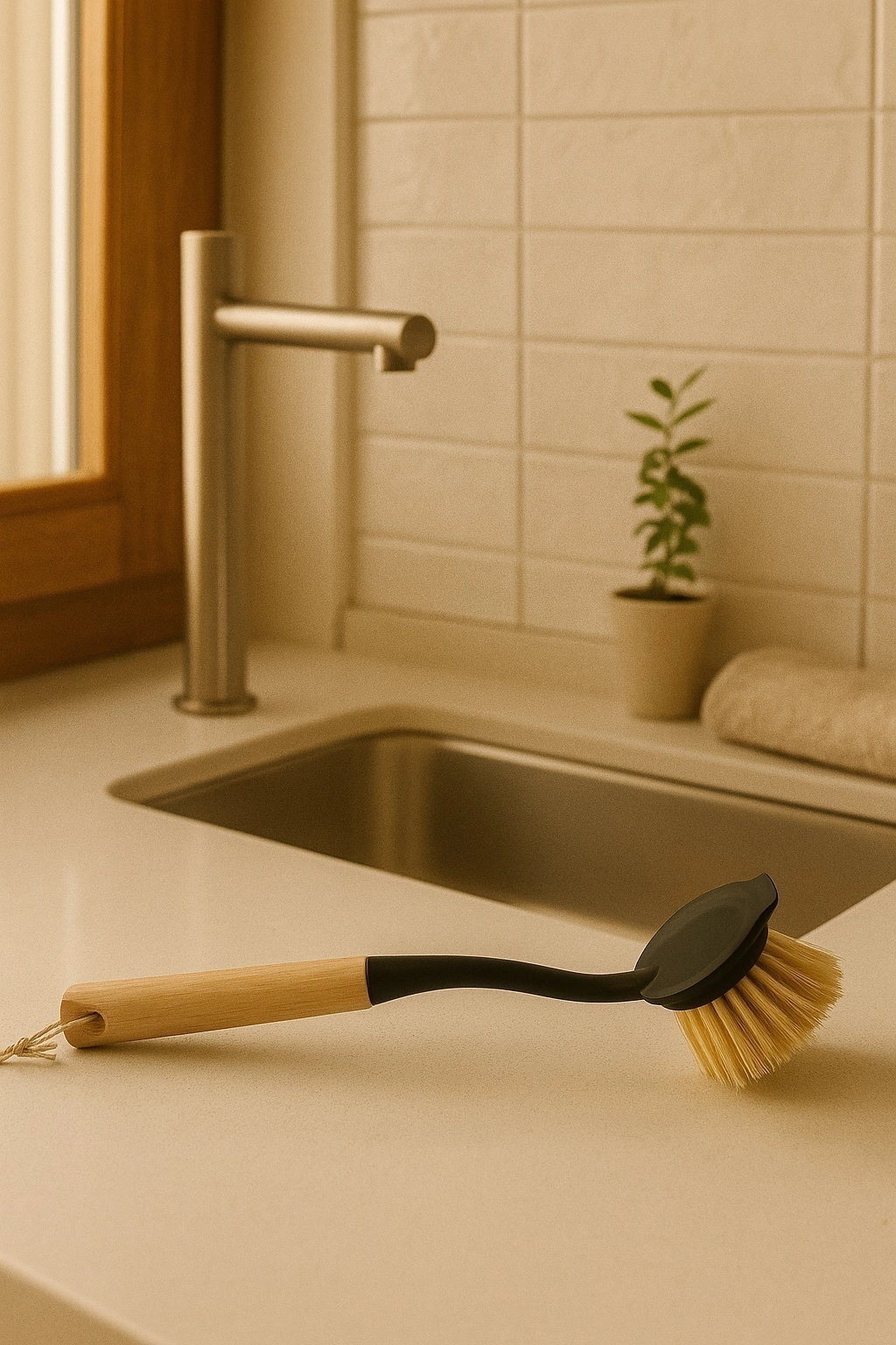 Ideal para limpiar platos, ollas, utensilios y superficies sin rayarlas. Las cerdas resistentes eliminan restos de comida con facilidad, y al ser reutilizable, ayuda a reducir el uso de esponjas desechables.