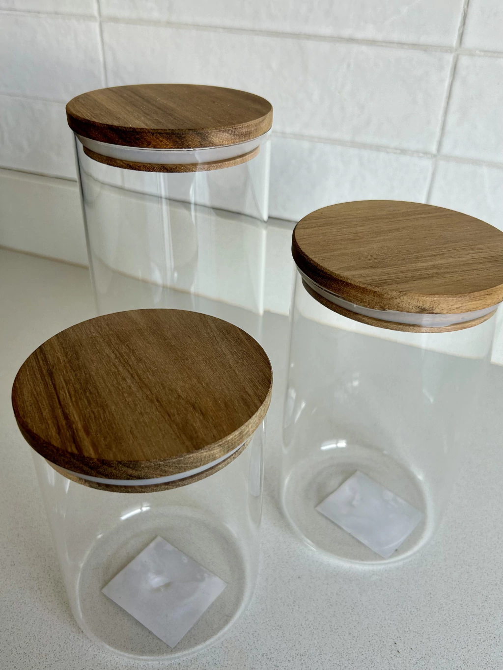 Frasco de Vidrio con Tapa de Madera de Acacia