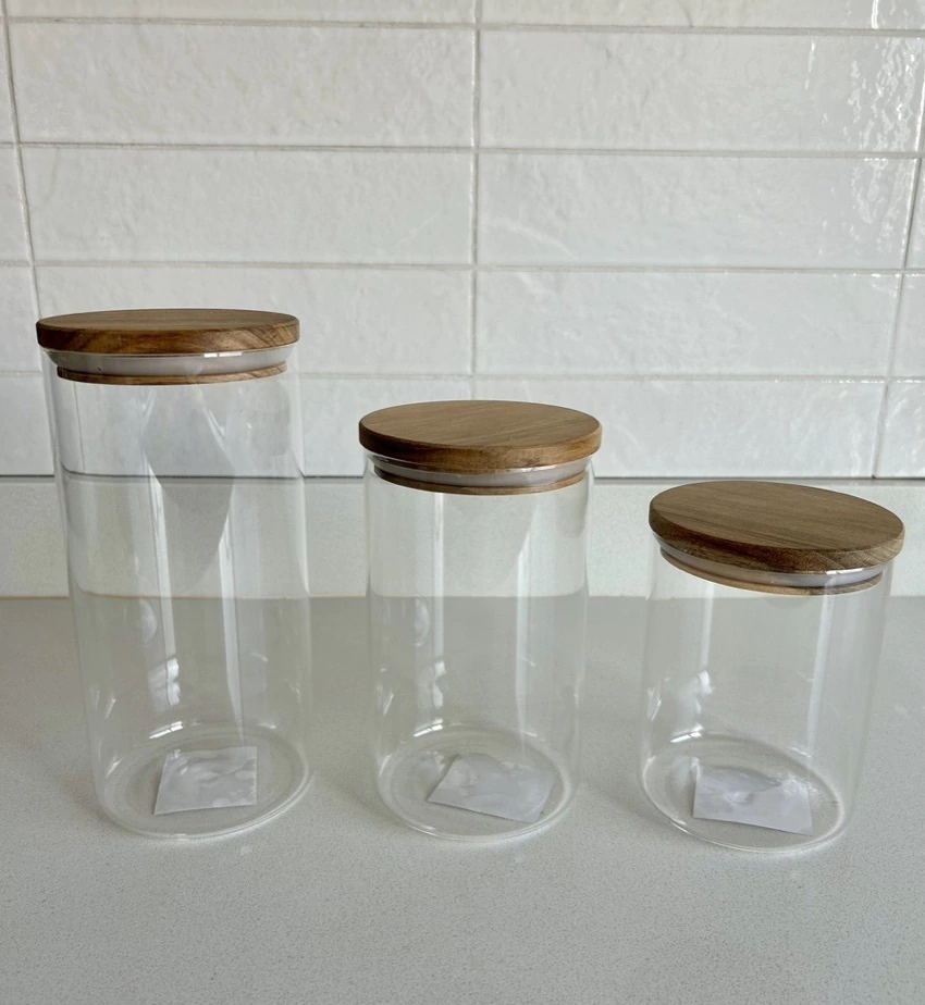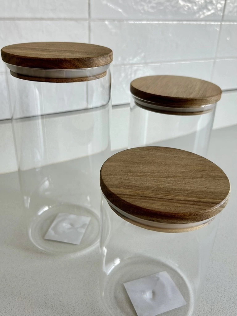 Este frasco combina elegancia natural y practicidad en un solo diseño. El cuerpo de vidrio transparente permite visualizar fácilmente el contenido, mientras que su tapa de madera de acacia, conocida por su durabilidad y belleza, aporta un toque cálido y sofisticado. Ideal para almacenar especias, granos, infusiones, frutos secos u otros alimentos secos, manteniéndolos frescos gracias a su cierre ajustado.